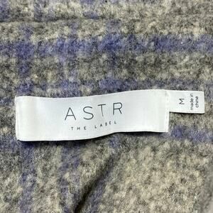 ASTR The Label Women's Gray Blue Plaid Check Knit Long Sleeve Oversized Trench Over Coat Jacket Size M