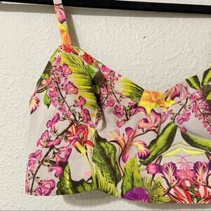 ASTR The Label Green & Pink Floral Crop Top Blouse XS Preowned in excellent condition