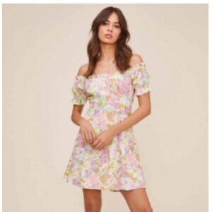 ASTR The Label Imagine Tie Dye Off Shoulder Dress Pink Yellow Tie Dye Size S NWT