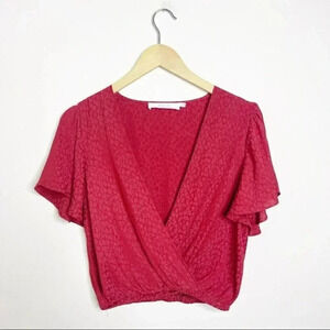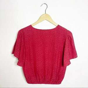 ASTR The Label Jacquard Surplice Cheetah Satin Crop Top Size Small