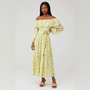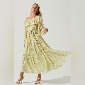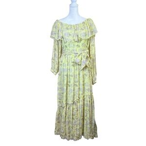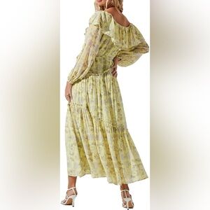 ASTR The Label Kaylani Floral Maxi Dress Yellow Peasant Prairie Sz Large Flowy