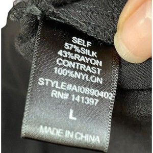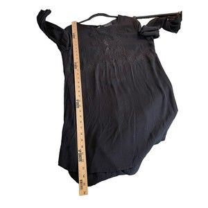 This elegant ASTR The Label dress is perfect for any formal occasion. The black silk and rayon blend with embroidered accents creates a sophisticated look. The dress features a round neck, long sleeves, and a button closure. The cut-out design adds a touch of modernity to the classic shift dress style. Ideal for weddings, parties, and cocktail events, this short dress is a must-have for any wardrobe. It is available in size L and requires dry cleaning only. The dress is suitable for summer, fall, and spring seasons.