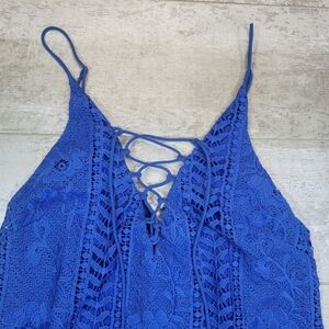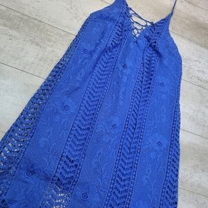 Excellent condition royal blue Crochet v neck lace up dress. Measurements: Chest- 15.5 Length- 35 Wedding Beach
