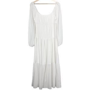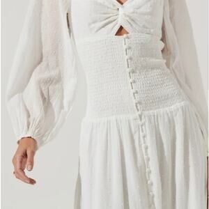 ASTR The Label Long Sleeve Twist Bust Smocked Bodice Dress in White, Size L