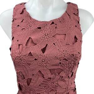 ASTR The Label Maroon Floral Lace Sleeveless Scalloped Hem Mini Sheath Dress S