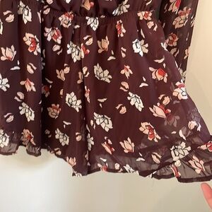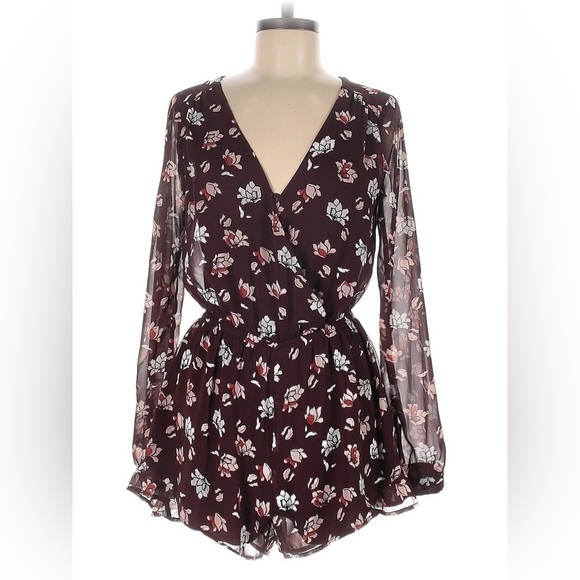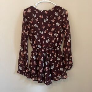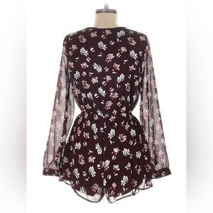 ASTR The Label | Maroon Floral Long sheer Sleeve Romper | Size XS