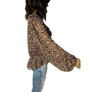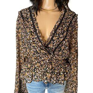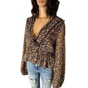 ASTR The Label NWT Chiffon Long Sleeve VNeck Peasant Floral Blouse Black Size XL