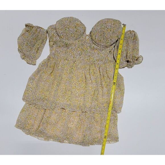 ASTR The Label Off Shoulder Two Tier Floral Mini Dress Yellow Multi Womens Large