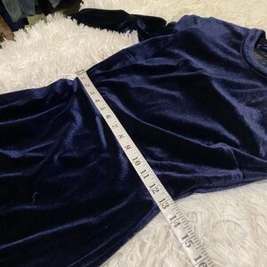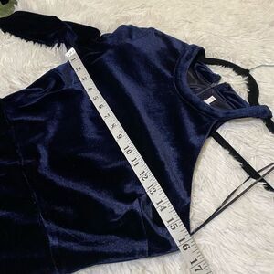 SO cute and in excellent like new condition from ASTR! Hidden zipper with eye/hook up back in new condition. Lined. One shoulder pad on long sleeve shoulder. Velvet. Navy blue in color. Size Small.