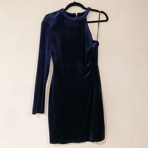 ASTR The Label One Shoulder Velvet Bodycon Mini Dress Navy Blue Small