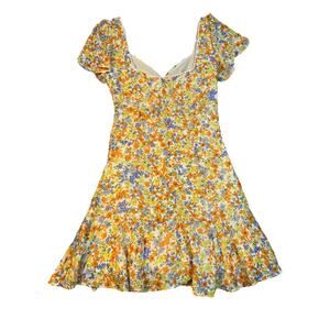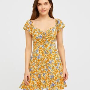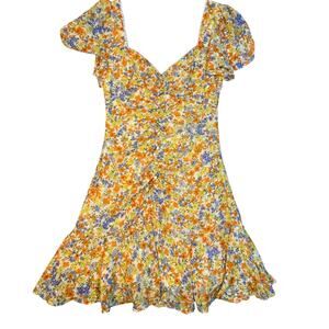ASTR The Label Orange Yellow Floral Ruched Mini Dress XS