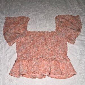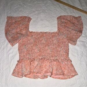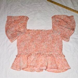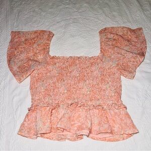 ASTR The Label Peach Flutter Butterfly Sleeve Crop Top Square Neck Floral Large