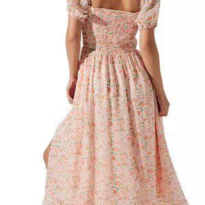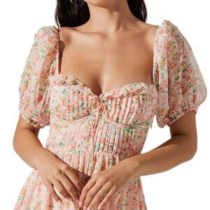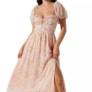 Gorgeous midi dress from ASTR the Label, a sweet floral print piece framed at the sides with charming short puff sleeves. Features a sweetheart neckline, midi silhouette and side zip closure. Very gently used - only worn once.