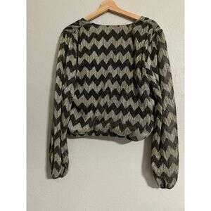 ASTR The Label Primadonna Surplice Wrap Gold Black Metallic Blouse Large