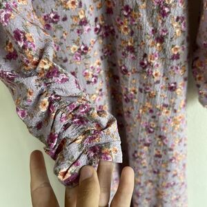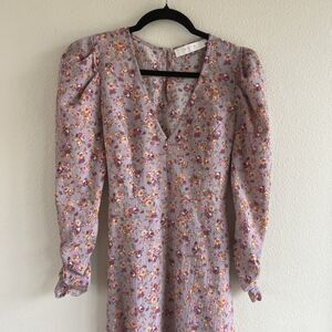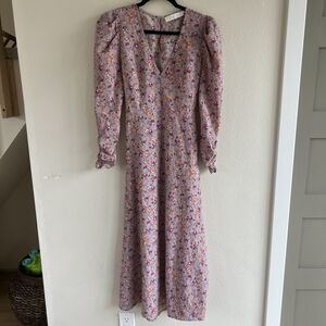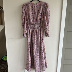 ASTR The Label Puff Sleeve Floral Midi Dress Women’s Small Purple Peach Cutout