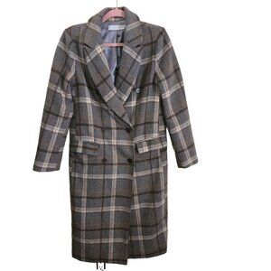 ASTR The Label Raquel Coat Grey Brown Plaid Double-Breasted Wool Blend Size S