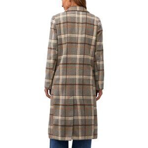 Elevate your style with the ASTR The Label Raquel Coat, featuring a sophisticated grey-brown plaid design. This double-breasted wool blend coat offers warmth and elegance, perfect for cooler seasons. Ideal for both casual and formal occasions, it complements any wardrobe effortlessly. Retail $220