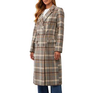 ASTR The Label Raquel Coat Grey Brown Plaid Double-Breasted Wool Blend Size S