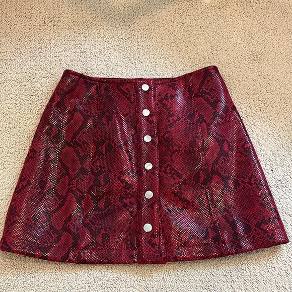 Super comfy red snake print skirt. Size xs fits true to size. Silver buttons down front