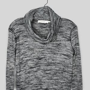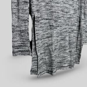 ASTR The Label ribbed long line top with cowl neck. It is a marled gray with side slits. Super versatile top!