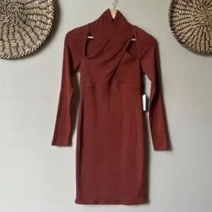 New with Tags ASTR The Label Rosey Rust Red Wrap Neck Cutout Dress