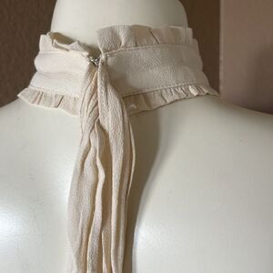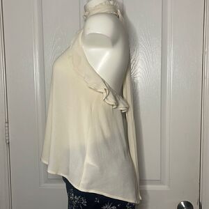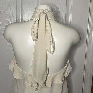 ASTR The Label Ruffle Halter Neck Tie Open Back Beige Blouse Top Womens