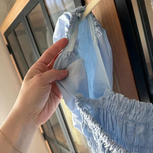 Light baby pastel blue Size XS Square neckline Short puff bubble sleeves
