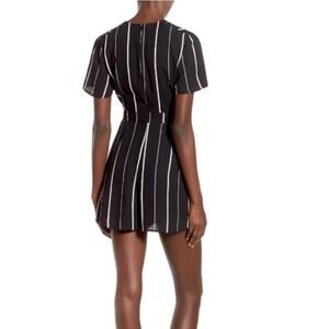 ASTR The Label Short Sleeve Deep V Striped Romper Black White Size Large