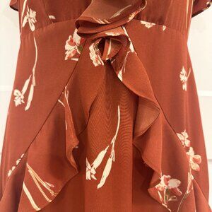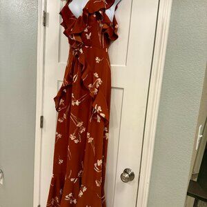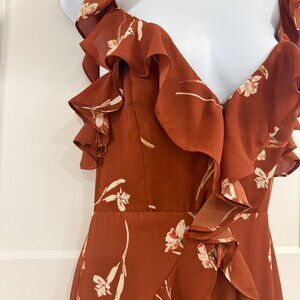 ASTR The Label Sleeveless Ruffle Maxi Dress Brown Spice Floral Size Small