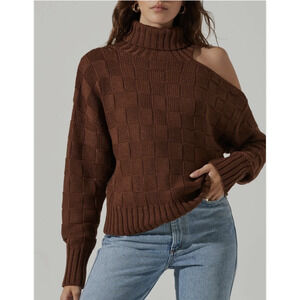 ASTR The Label Sweater Medium Brown Cold Shoulder Turtleneck Cutout AT17528