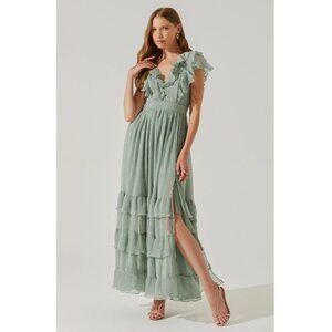 ASTR The Label Tiara Ruffle Sage Maxi Dress - NWT Size S