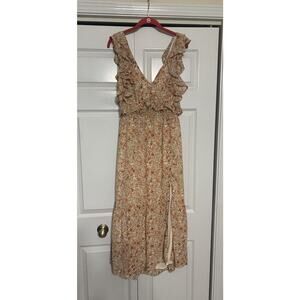 ASTR The Label Tie Open Back Floral Baby Doll Midi Dress Fairy Cottage Core L