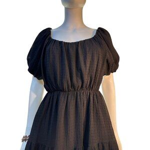 ASTR The Label Tiered Smocked Puff Sleeves Midi Dress Black Size Small EUC