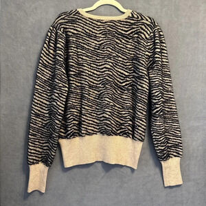 ASTR The Label Tiger Striped Fuzzy V-Neck Sweater Size Large Black Beige Animal Print