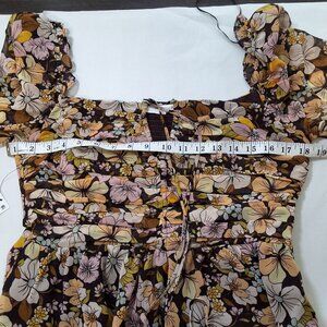 ASTR The Label Toni Floral Peplum Top Brown& Yellow Front Keyhole Cut-Out Fairy