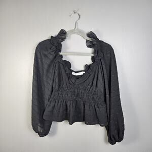 ASTR The Label Top Size XS Black Sparkle V Neck Balloon Sleeve Witchy Peasant