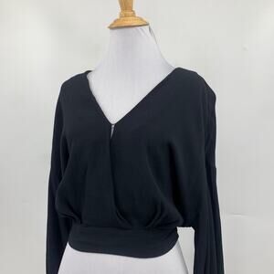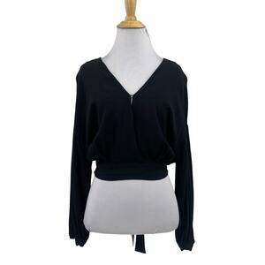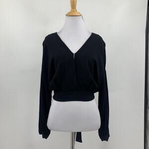 ASTR THE LABEL TOP WOMENS M MEDIUM BLACK JAISE V NECK CROPPED OPEN TIE BACK