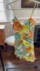 Vibrant floral dress with strappy design. Features orange and green hues with a touch of yellow. Perfect for a summer outing.