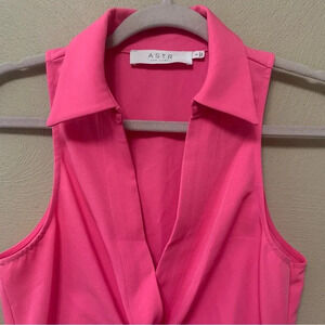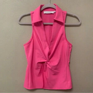 ASTR The Label Twist Front Collared Top Size Small Hot Pink