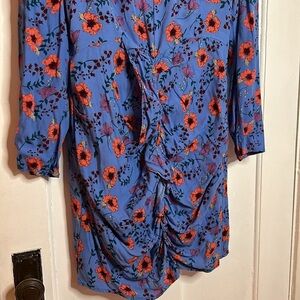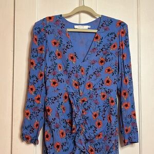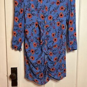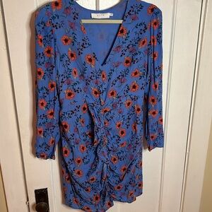 ASTR The Label V Neck Ruched Ruffle Front Long Sleeve Floral Mini Dress
