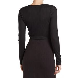 ASTR The Label Women Black Rib Knit Casual Twist Cutout Thong Bodysuit Size S