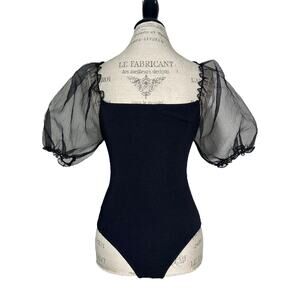 ASTR The Label | Women | Darling Solid Black Sheer Puff Sleeve Bodysuit | Medium