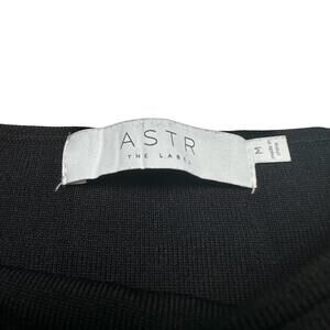 Pre-loved women’s ASTR The Label Darling solid black bodysuit with sheer puff sleeves, ribbed texture, and snap button crotch closure.