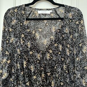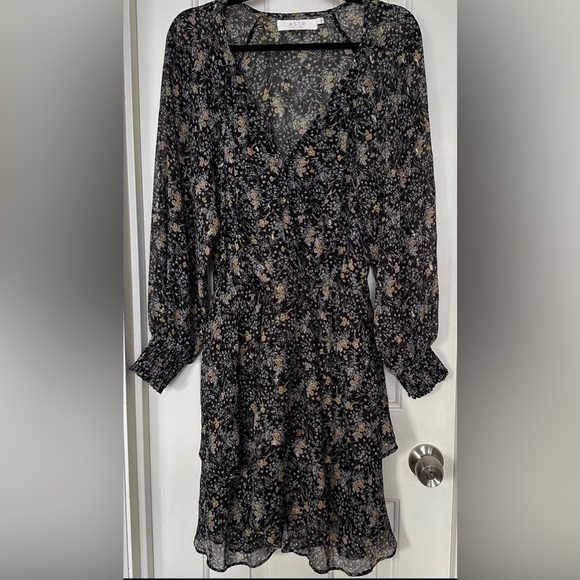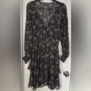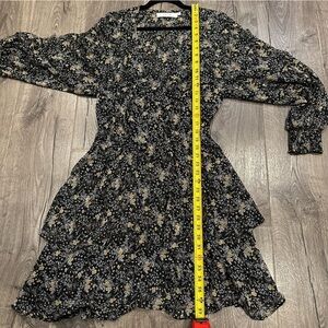ASTR The Label Womens Black Gold Long Sleeve Tiered Ruffle Floral Dress Size L