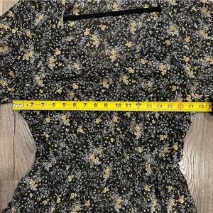 Colorway per manufacturer is black mustard floral. There are metallic gold accents throughout the dress that are hard to capture in the photographs.