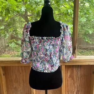 ASTR The Label Women's Colorful Floral Smocked Crop Top Size L