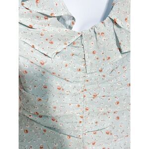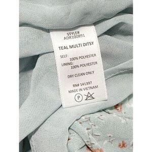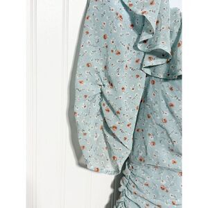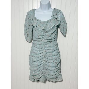 ASTR The Label Women's Ditsy Floral Ruffle Neck Ruched Mini Dress Teal Blue Small