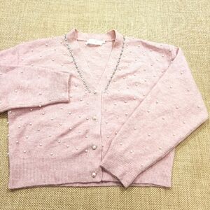 ASTR The Label Women's Faux Pearl & Rhinestones Embellished Cardigan Pink XL EUC