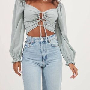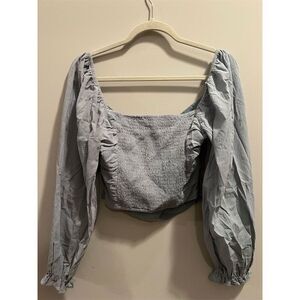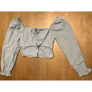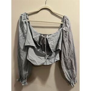 Brand: ASTR Size: L Color: Blue Type: Blouse Department: Women Style: Cropped Material: Lightweight, Breathable Fabric Neckline: Sweetheart Sleeve length: Long Sleeve Sleeve type: Puff Sleeve Pattern: Solid Features: Cinch Detail, Elastic Cuffs Fit: Regular Occasion: Casual Season: Spring Garment care: Dry Clean