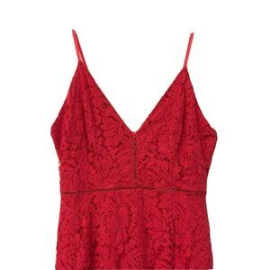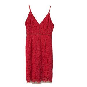 ASTR The Label Womens Red Lace V-Neck Sheath Cocktail Sleeveless Dress Sz Medium